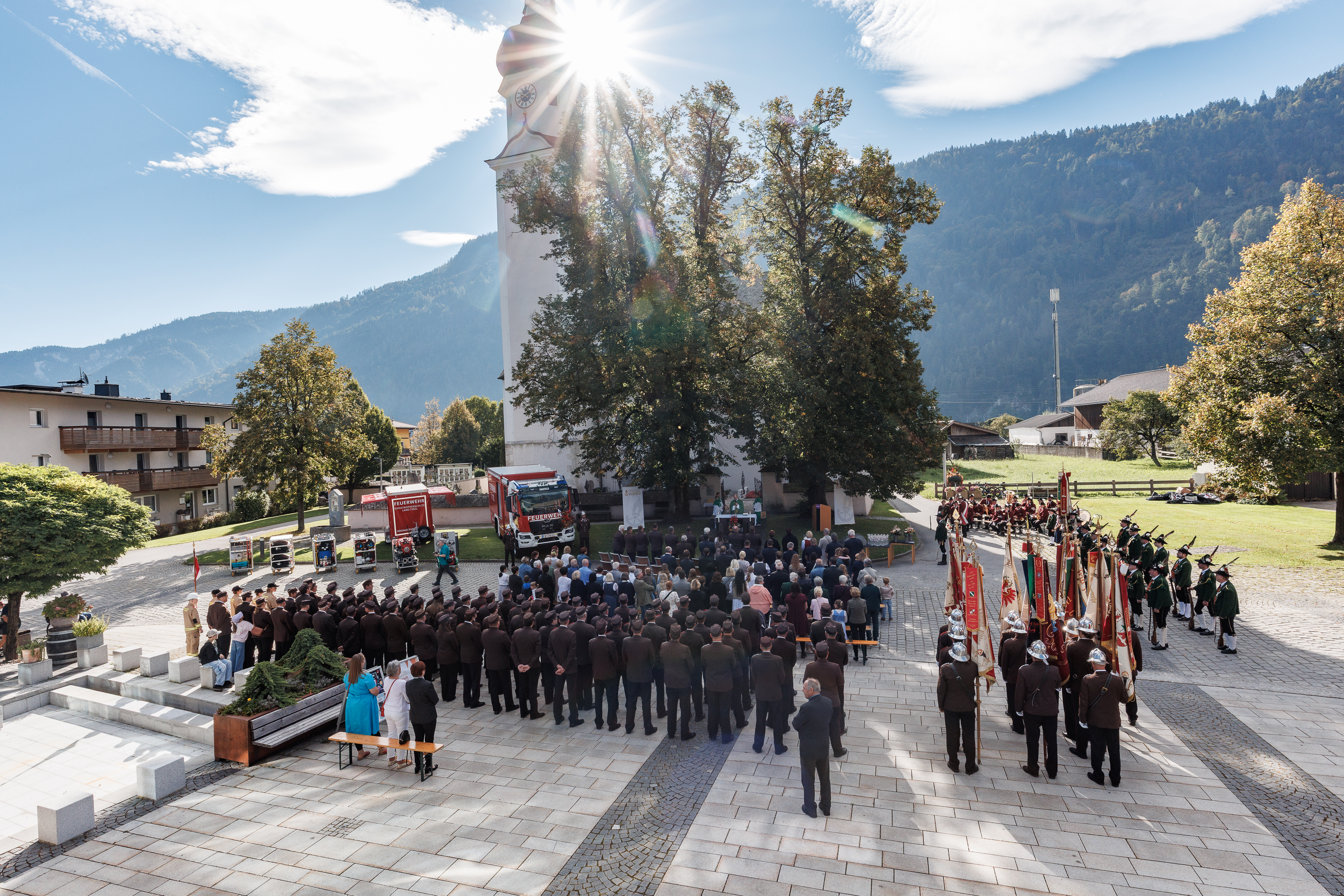 Das neue Tanklöschfahrzeug LFCA (Löschfahrzeug mit Containeraufbau) wurde im Rahmen einer Feldmesse am Lindenbühel gesegnet.