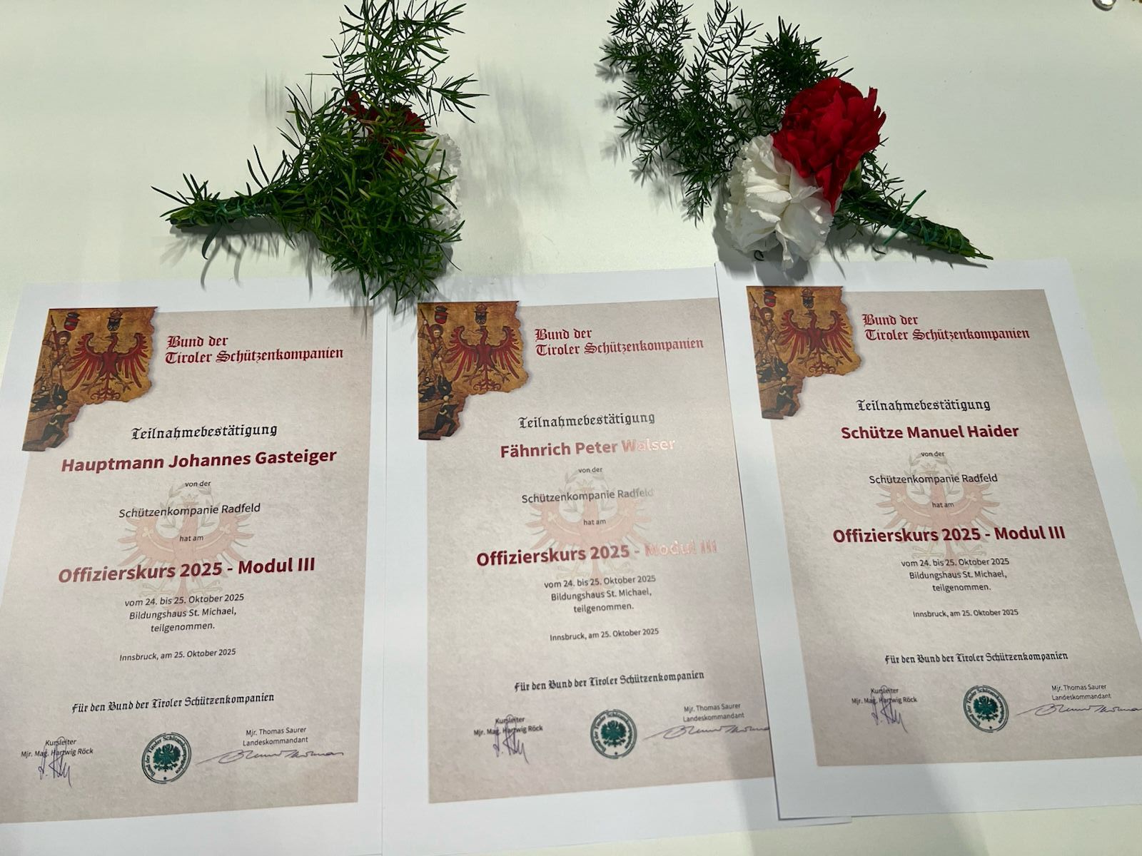 Für unsere Kompanie nahmen erfolgreich Hauptmann Johannes Gasteiger, Fähnrich Peter Walser und Kassier Stv. und Zeugwart Manuel Haider teil.