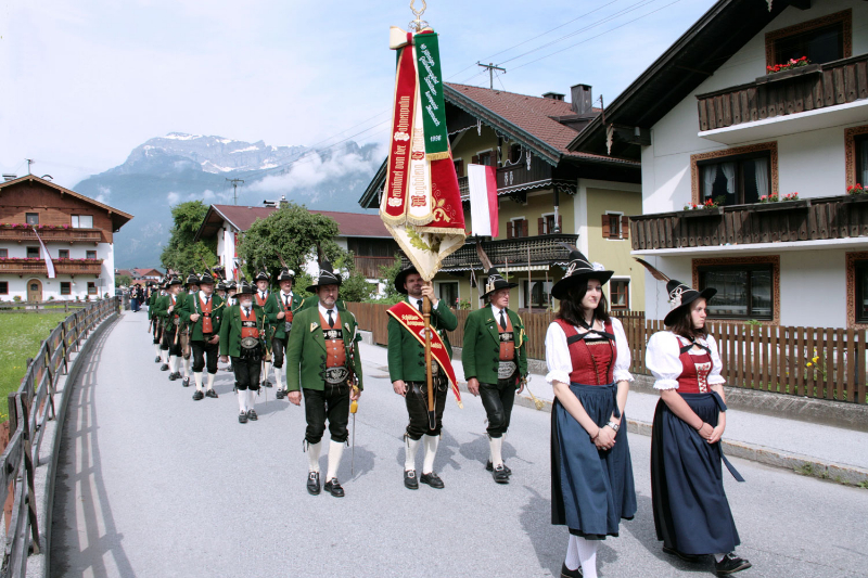 Das erste Ausrücken 2012 war wie üblich die Fronleichnamsprozession von Rattenberg nach Radfeld.
